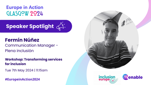 Speaker Fermín Núñez from Plena inclusión, Spain, will talk through how this can be done how you can transform services for inclusion.